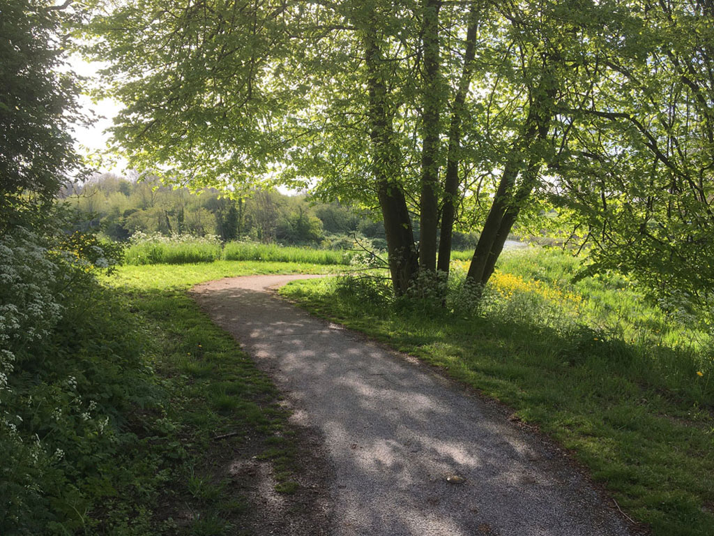 Het eerste stuk gaat langs de A27 en vlak voor de brug er onder door.