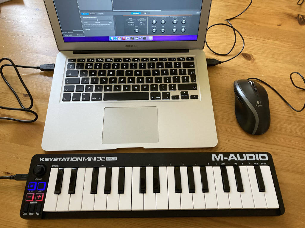 Voor toetsinstrumenten is het handig om een klein MIDI-keyboardje te