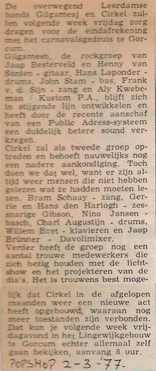 Gorkumse Courant rubriek Popshop 02-03-1977
